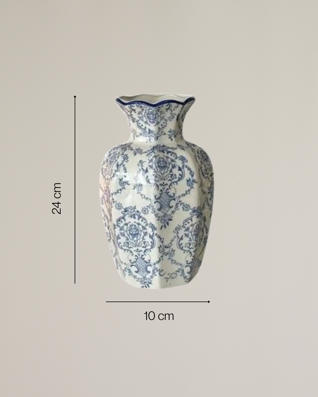 A sua base branca luminosa e os pormenores florais em tons de azul evocam serenidade e elegância, enquanto a silhueta minimalista revela modernidade e sofisticação.